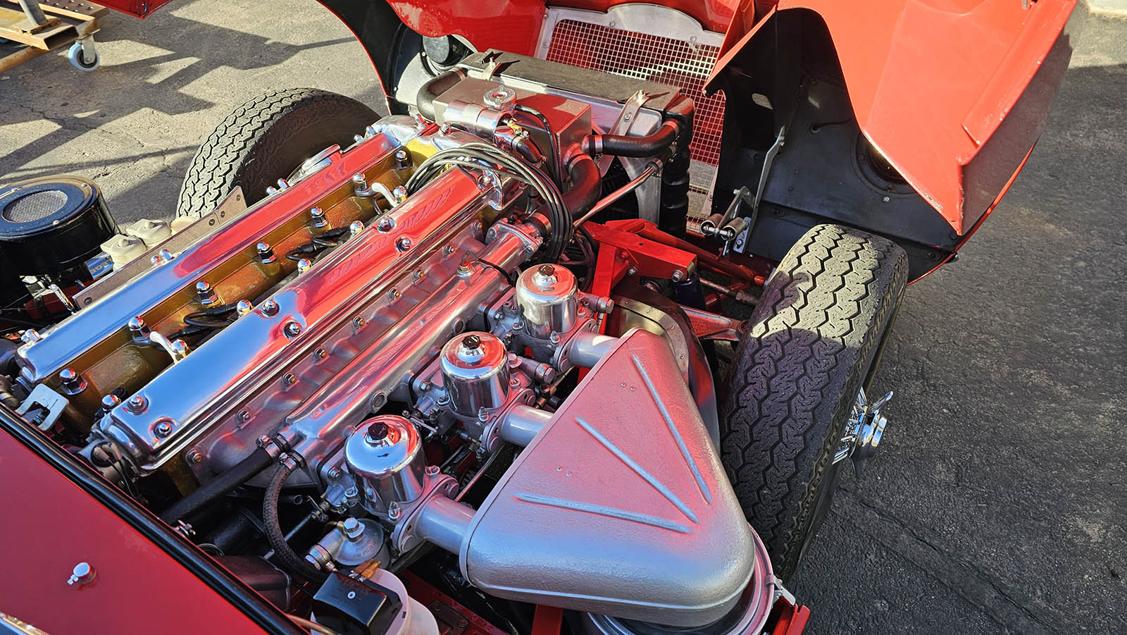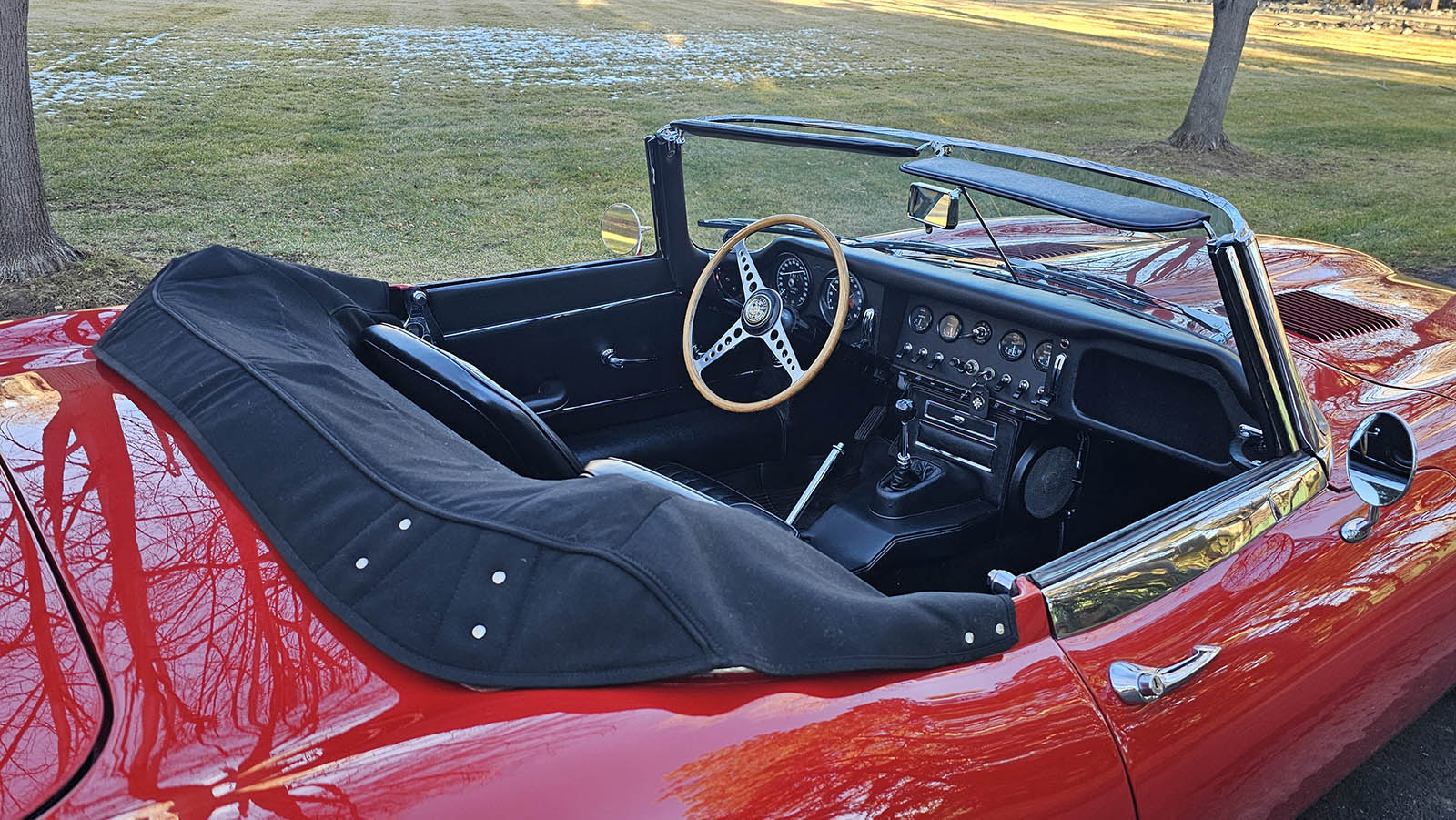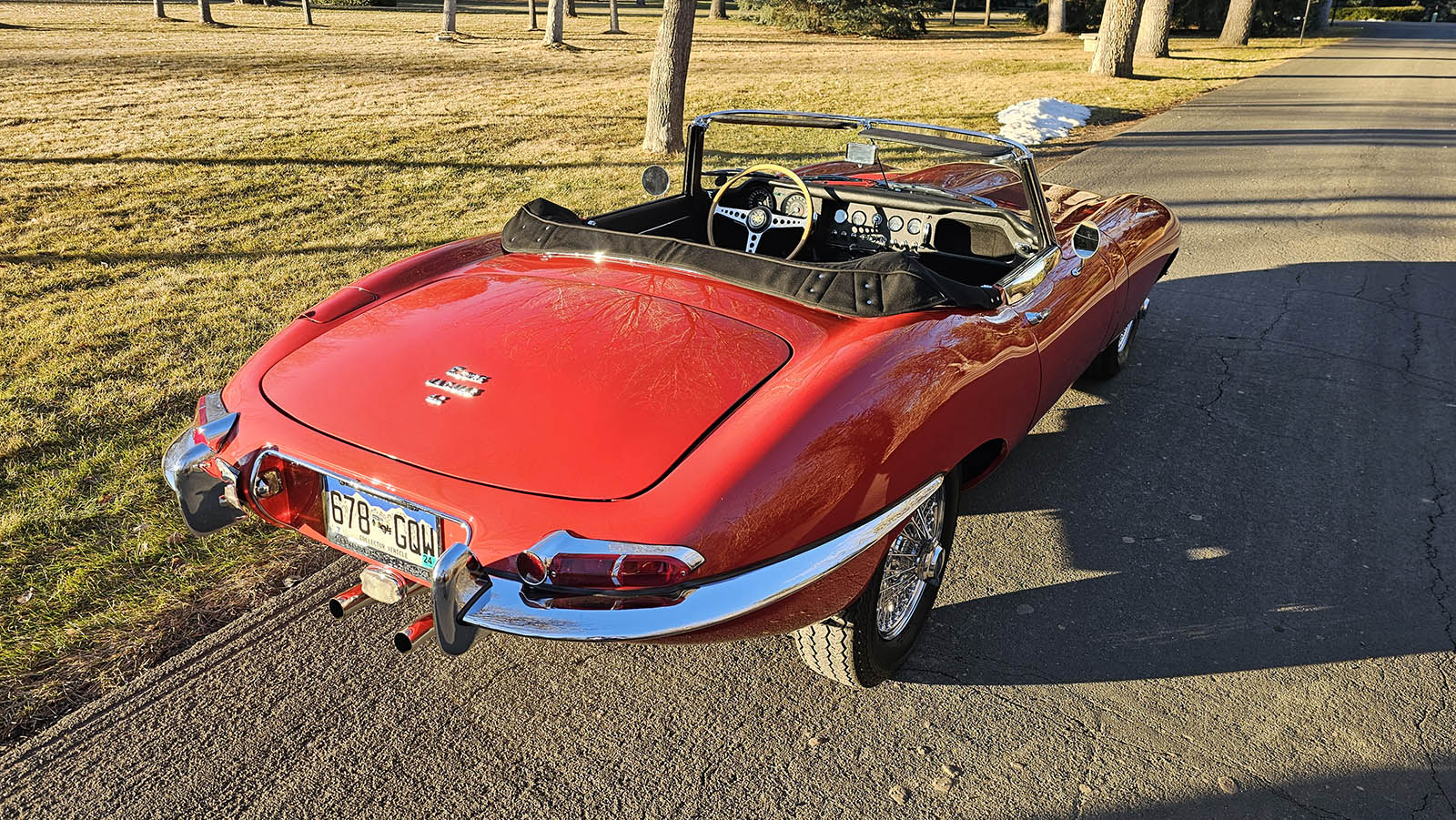 Since the restoration, this E-Type has been carefully maintained and preserved with extensive documentation supporting its history. The car is completely rust-free and has spent the majority of its life in dry climates, including California and Colorado. The body is straight, the panel gaps are correct, and the overall fit and finish are exactly what serious Jaguar E-Type buyers expect.