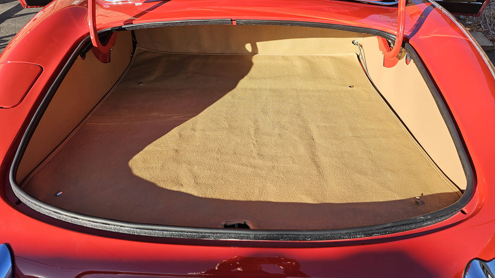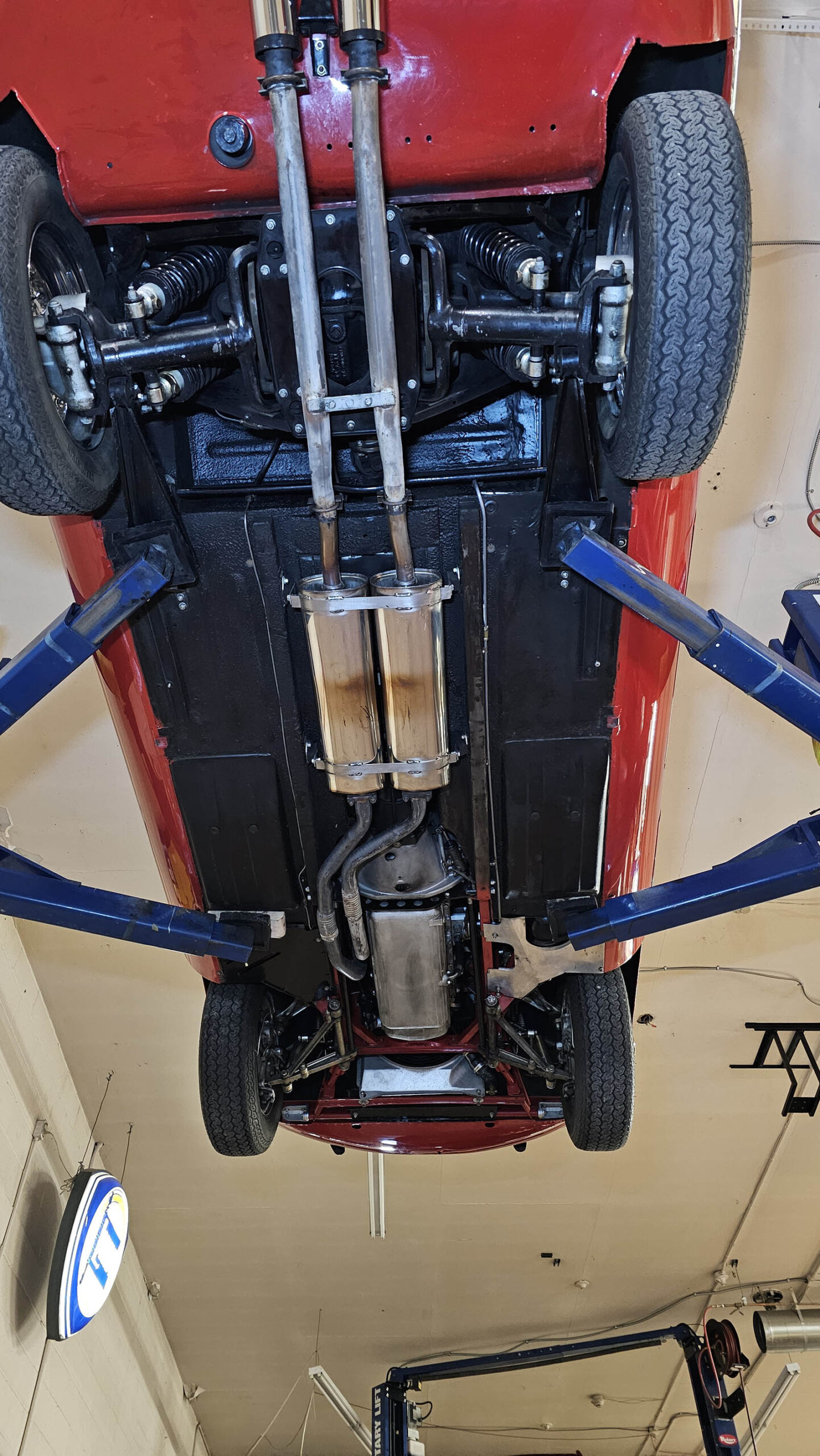 Included with the car is a substantial documentation file that adds confidence and provenance. This Jaguar XKE comes with a photo album documenting the restoration process, complete maintenance records since the restoration, the owner’s manual, and period memorabilia. These materials reinforce the quality of both the restoration and the long-term care the car has received.