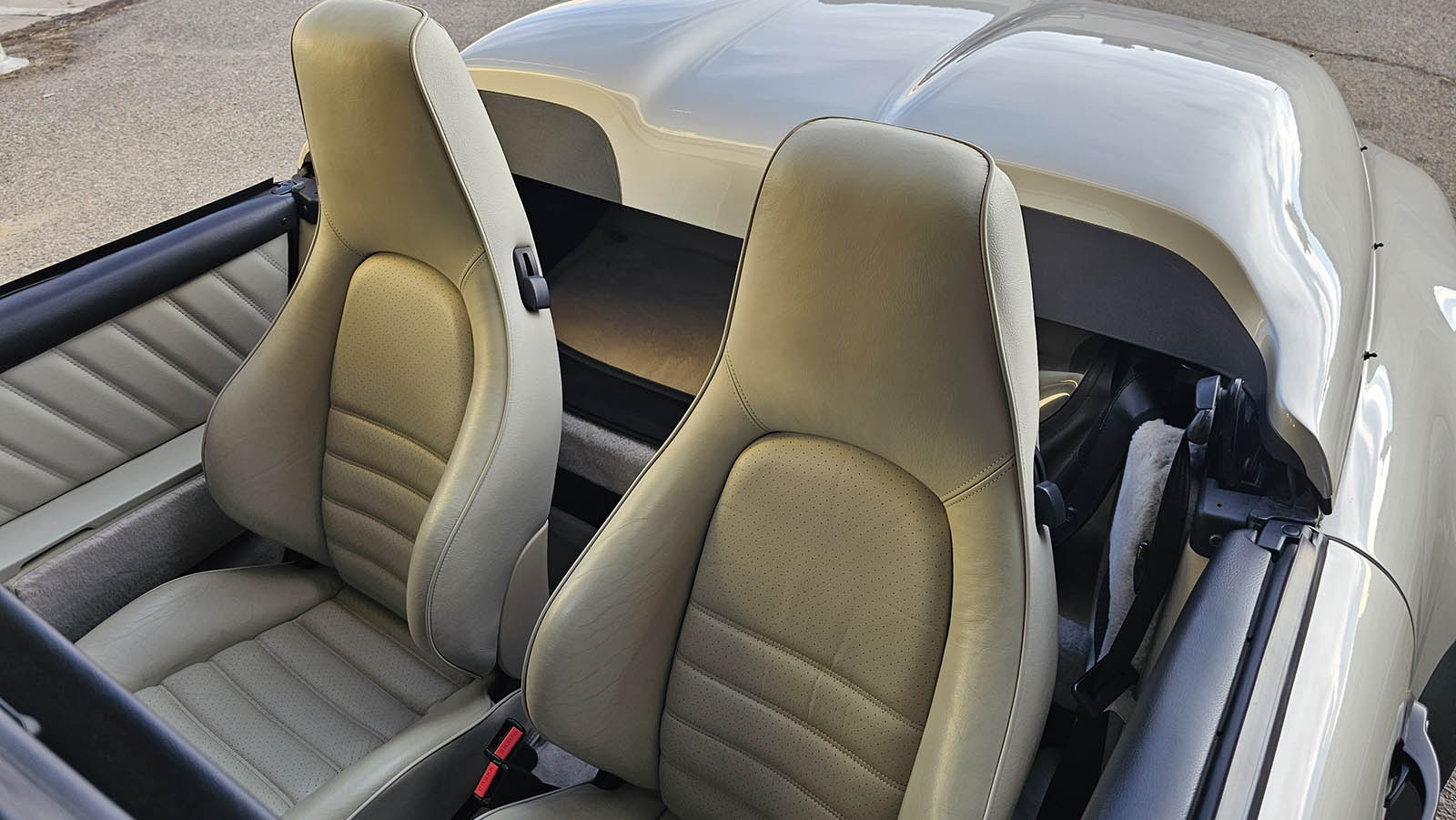 The factory color combination is understated and original, pairing Linen Grey Metallic paint with a Linen leather interior. The car is well optioned, including factory sport seats for both driver and passenger with electric height adjustment and the shorter factory gear shift lever. The overall presentation reflects careful ownership and restrained use.
