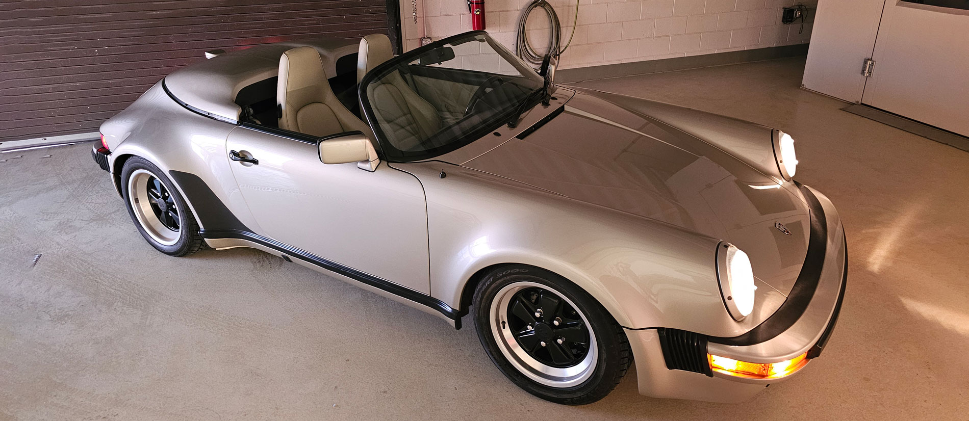 The 1989 Porsche 911 Speedster is one of the most distinctive and collectible air-cooled 911 variants, created as a modern tribute to the legendary Porsche Speedsters of the 1950s. Built in limited numbers for a single model year, it features a lower, more raked windshield, a lightweight manual top, and the signature double-hump rear cover that defines the car’s silhouette.